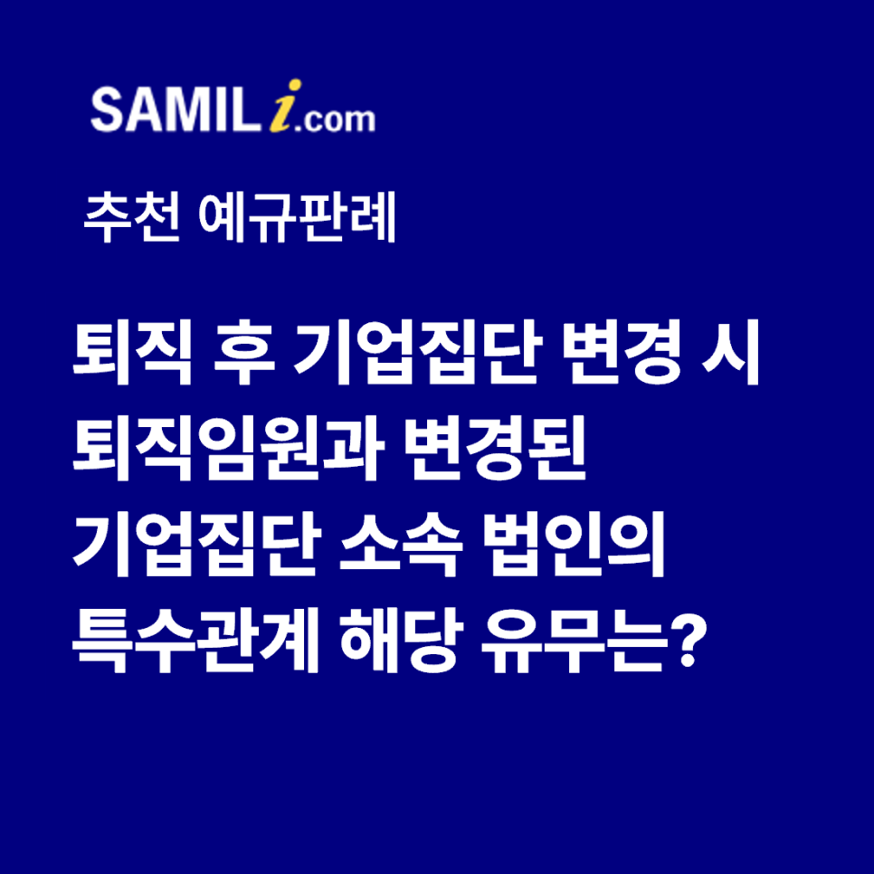 귀 서면질의의 사실관계와 같이, 甲이 질의법인에서 퇴직할 당시 질의법인이 A법인 기업집단에 속했으나 퇴직 후 B법인 기업집단으로 변경된 경우에도 퇴직 후 3년(해당 기업이「독점규제 및 공정거래에 관한 법률」제31조에 따른 공시대상기업집단에 소속된 경우는 5년)이 지나지 않은 경우에는「상속세 및 증여세법 시행령」제2조의2제3호나목에 따른 퇴직임원으로서 B법인의 특수관계인에 해당하는 것임.