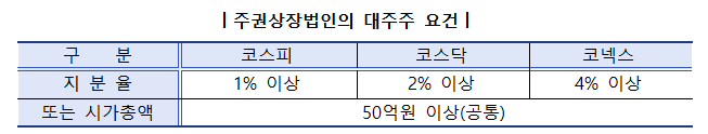 [참고] 최대주주 그룹의 경우 상장법인 대주주 요건